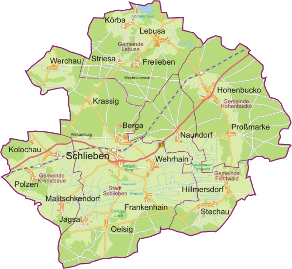Hier können Sie sich über die fünf zum Amt Schlieben gehörenden Gemeinden informieren. Wählen Sie die entsprechende Gemeinde aus der Menüliste oder klicken Sie in die Karte.